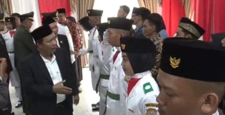 Kabar Sabak – Bupati Tanjab Timur Romi Hariyanto, mengukuhkan 30 anggota Pasukan Pengibar Bendera (Paskibra) yang terdiri dari 15 putra dan 15 putri di Pendopo Rumah Dinas Bupati pada Jumat (16/08).
