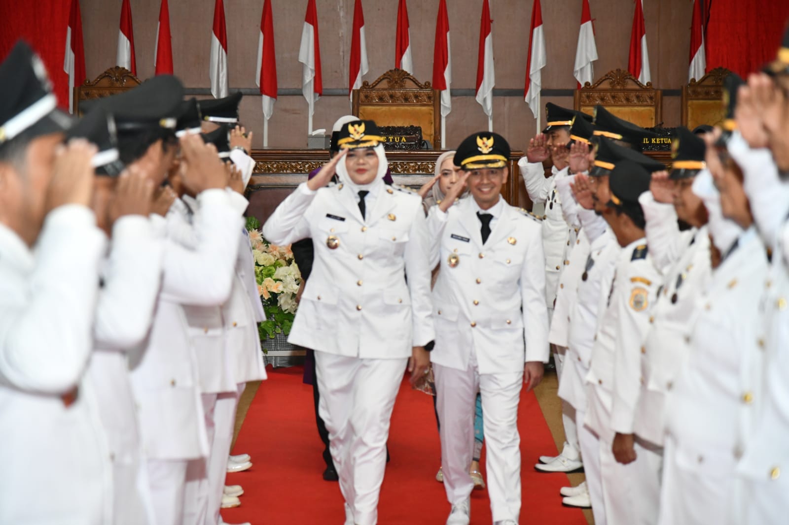Dilla menyampaikan pidato hari ini didampingi langsung Wabup Muslimin Tanja. Sebelum paripurna, di tempat yang sama digelar serah terima jabatan bupati dan Wabup dari Romi Hariyanto – Robby Nahliyansyah.(redaksi)