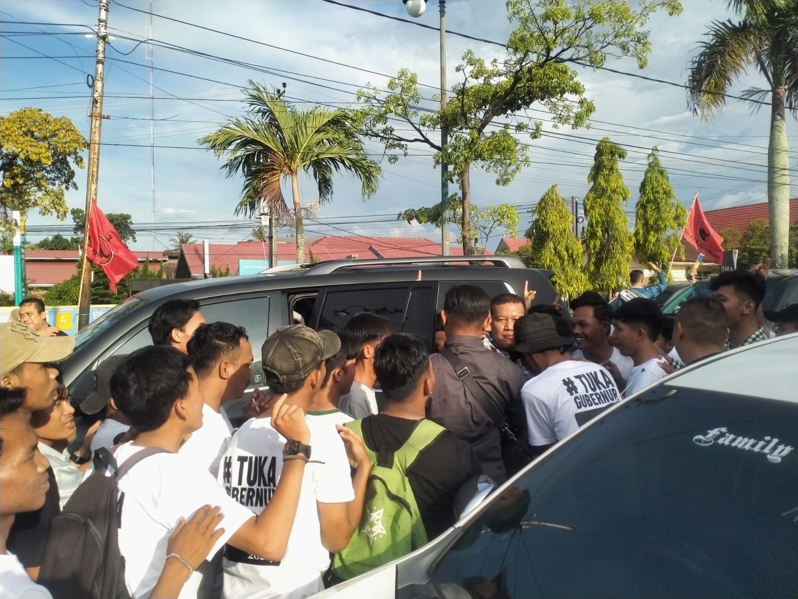 Aksi pencegatan iring-iringan kendaraan yang ditumpangi Romi beserta rombongan, terjadi ketika melintasi Jalan Sultan Taha, mobil Romi beserta tombongan dicegat oleh para mahasiswa sembari meneriakkan Tuka Gubernur November 2024 sambil mengiring ke atas pentas.