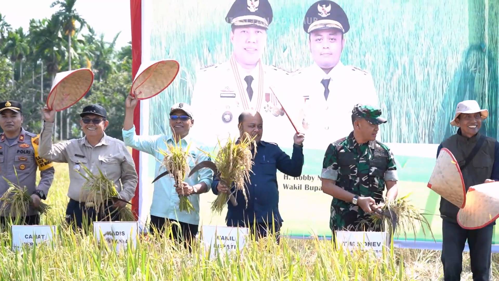 Kabar Sabak – Wakil Bupati Tanjung Jabung Timur (Tanjab Timur) Propinsi Jambi, H. Robby Nahliyansyah, SH menghadiri Panen padi di lokasi optimalisasi lahan sawah (Opla) dan pompanisasi bersama Kodim 0419/Tanjab di Desa Lagan Ulu kecamatan Geragai, Jum’at (20/9). Selain panen bersama pihak kodim melakukan monitoring evaluasi kegiatan optimalisasi lahan sawah seperti pembangunan Drainase, jembatan, normalisasi parit, dan pembuatan tanggul yang dikerjakan oleh TNI.